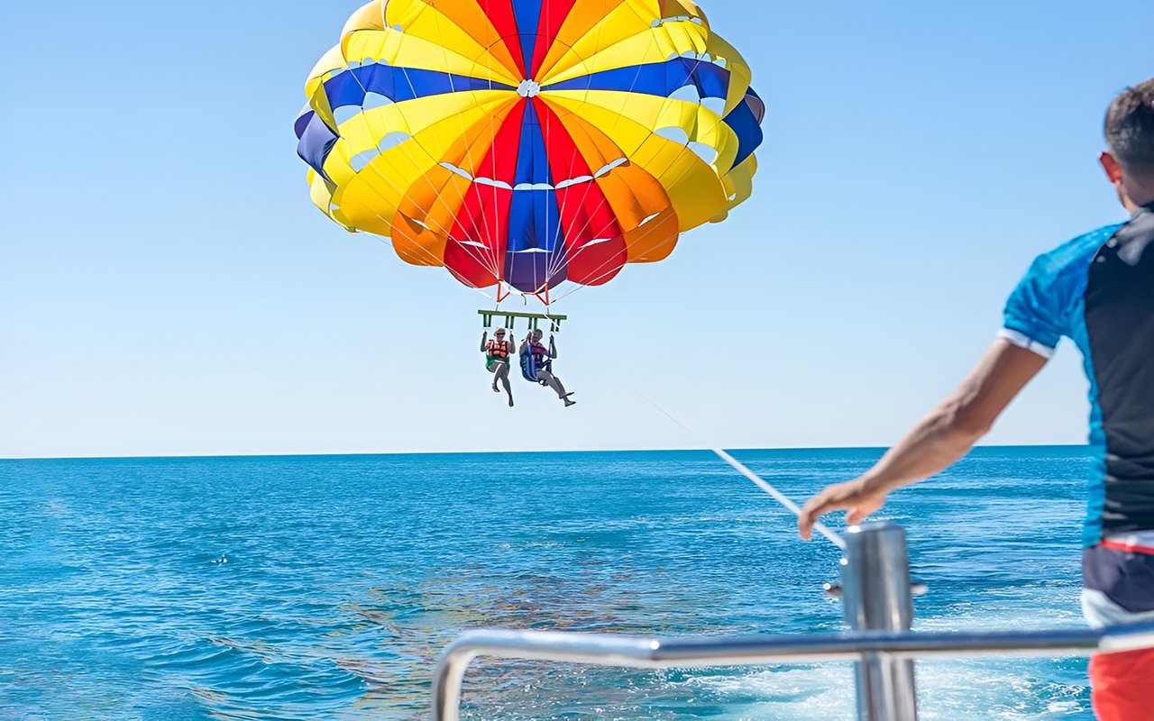 The parasailing experience in Aqaba is not just an adventure; it is moments of absolute freedom and excitement that take you to another world. Whether you are alone or with a loved one, you will enjoy enchanting views from a height of up to 150 meters, where nature and beauty merge with excitement in an unforgettable adventure.